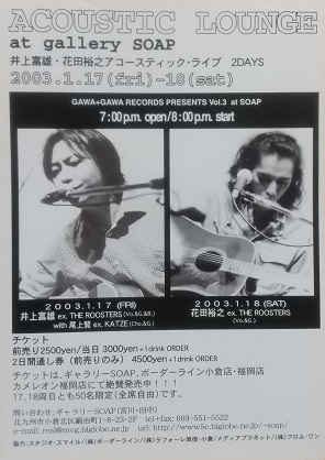 ・花田裕之 アコースティックライブ 2003.01.18 小倉gallery SOAP (提供:K.ARAKAWAさん。ありがとうございます) |