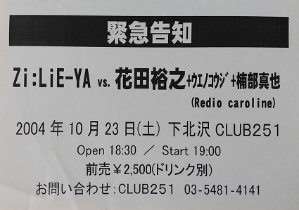 ・Zi:LiE-YA vs. 花田裕之+ウエノコウジ+楠部真也 2004.10.23 下北沢CLUB251 |