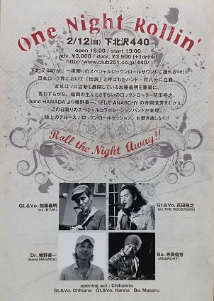 | ・「One Night Rollin'」 加藤義明/花田裕之/椎野恭一/寺岡信芳 2012.2.12 下北沢440 |
