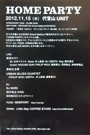 ・「HOME PARTY」 2012.11.15 代官山UNIT |