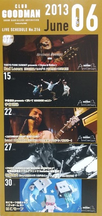・秋葉原CLUB GOODMAN マンスリースケジュール表紙 (2013.6.22 band HANADA / 自慰獣) |
