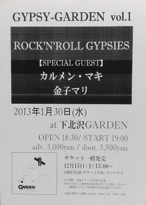 ・「GYPSY-GARDEN VOL.1」 2013.1.30 下北沢GARDEN ROCK'N'ROLL GYPSIES (GUEST カルメン・マキ/金子マリ) |