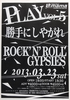 | ・ROCK'N'ROLL GYPSIES / 勝手にしやがれ 2013.3.23 渋谷ラママ |