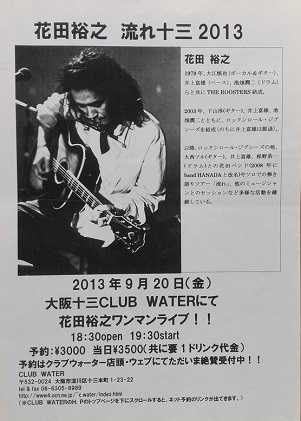 ・花田裕之「流れ」 2013.9.23 大阪十三CLUB WATER (提供:ドクターパイレーツさん。ありがとうございます) |