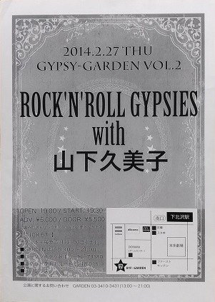 ・「GYPSY-GARDEN VOL.2」 2014.2.27 下北沢GARDEN ROCK'N'ROLL GYPSIES with 山下久美子 |