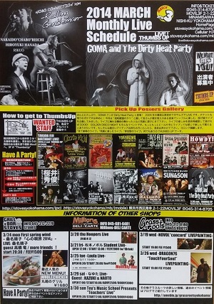・横浜サムズアップ マンスリースケジュール (2014.3.15 RIKUO/花田裕之/仲井戸麗市) |
