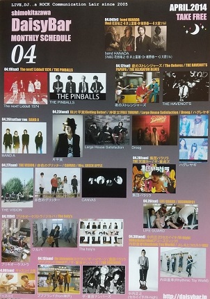 ・下北沢DaisyBar マンスリースケジュール (2014.4.4 band HANADA) |