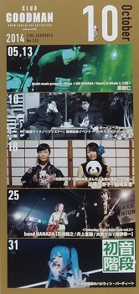 ・秋葉原CLUB GOODMAN マンスリースケジュール (2014.10.25 band HANADA / T字路s) |