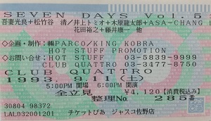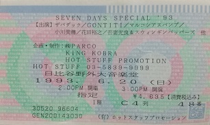 | 花田裕之 1993.6.20 日比谷野音「SEVEN DAYS SPECIAL '93」 1.BONNET 2.HEAVENLY! 3.おだやかな午後 4.あの娘には判らない (情報提供:yamadaさん) |