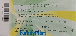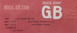 | ROCK'ROLL GYPSIES・'12/02/18 吉祥寺ROCK JOINT GB 01.LAZY SUN 02.只の夢 03.LOVE HURT 04.OH! MY GOD 05.GUN CONTROL 06.渇く夜 07.そろそろ 08.LEATHER BOOTS 09.I'M A KING BEE 10.ようよう 11.黒の女 (下山) 12.CRAZY ROMANCE 13.WORK IT OUT 14.穏やかな時へ 15.そんなとこ 16.N.W.O. (下山) 17.LUCKY LOVE (アンコール) 18.光 19.LET'EM ROLL |
