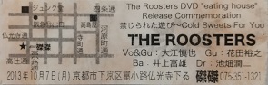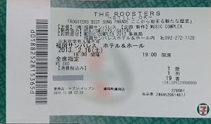 | THE ROOSTERS・2013.2.16 福岡サンパレス 01.テキーラ 02.HEART'S EDGE 03.Good Dreams 04.I'm Swayin' In The Air 05.HEY GIRL 06.ROSIE 07.Girl Friend 08.KING BEE 09.FOOL FOR YOU 10.Chocolate Wine(新曲) 11.Leather Boots 12.She Does It Right 13.Baby Sitter 14.Venus 15.ニュールンベルグでささやいて 16.Case Of Insanity 17.SAD SONG 18.Let's Rock 19.恋をしようよ 20.C・M・C (アンコール1) 21.C'mon Everybody 22.Get Everything 23.Little Red Rooster (アンコール2) 24.新型セドリック 25.One More Kiss 26.SWEET HOME CHICAGO (アンコール3) 27.どうしようもない恋の唄 28.MONA |
