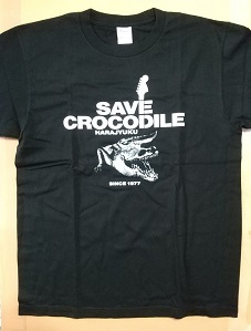 ・2020年。「SAVE CROCODILE」Tシャツ。原宿クロコダイル救済のクラウドファンディングのリターン品。フロントのデザインもカッコイイが、バックには出演者の名前が印刷されており、ルースターズ、花田さんの名前もあり。 |