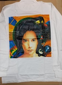・「OPEN YOUR EYES」のジャケット柄の長袖Tシャツ。これも確か通販で入手した。やはり後ろの首の部分に「HIROYUKI HANADA」のロゴあり。 |