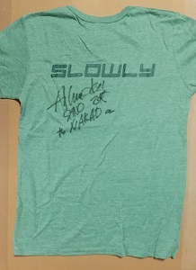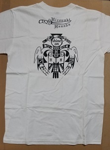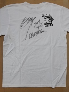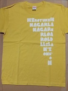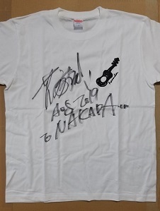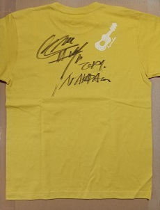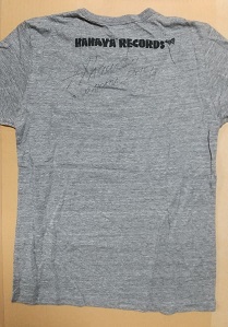 ・2022年2月12日に前橋どらむかんでの流れで購入。サインもいただいた。上のTシャツの色違いだが、新型コロナのためライブ活動を中止させていたため、2020年の在庫がまだ余っているのだろう。 花田さんとしてもこの在庫をさばけないと新しいデザインのTシャツが作れないだろうと思い、少しでも協力できればと購入させていただいた。 |